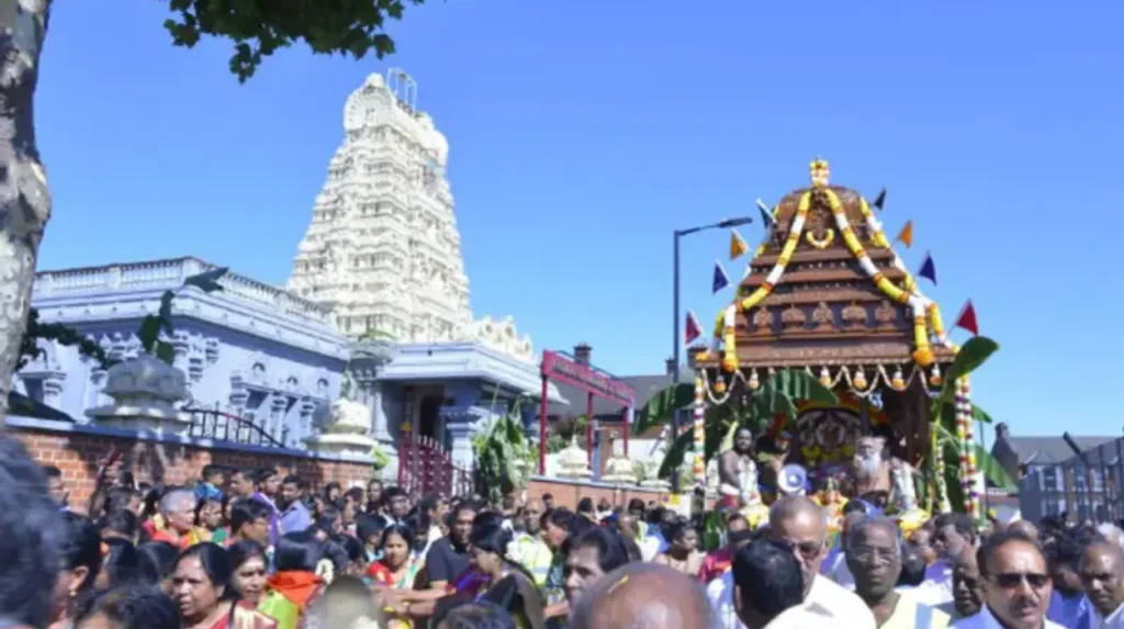 One of the temple’s most spectacular events is the annual Ther (chariot) festival, a highlight in East London’s cultural calendar. Attracting approximately 10,000 visitors, this festival features a grand procession where a beautifully decorated chariot carrying Lord Murugan’s idol is pulled through the streets by devotees. The event epitomizes community spirit, devotion, and Tamil cultural vibrancy, drawing people from all backgrounds to witness and participate in this moving display of faith.