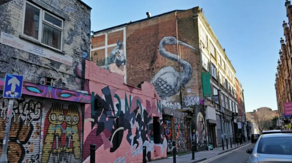 Brick Lane and Shoreditch are known for their dynamic street art scenes, featuring constantly changing murals by world-famous artists. The areas are rich with independent shops, galleries, and eateries reflecting East London’s multicultural identity.​