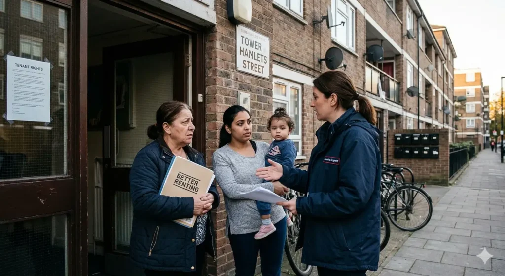 Tower Hamlets council directs cases to its Private Sector Housing team, which coordinates with Better Renting for doorstep interventions. Hackney council’s Tenancy Relations officers manage referrals, while Waltham Forest, Redbridge, and Barking & Dagenham councils use their Environmental Health or Housing Advice units.