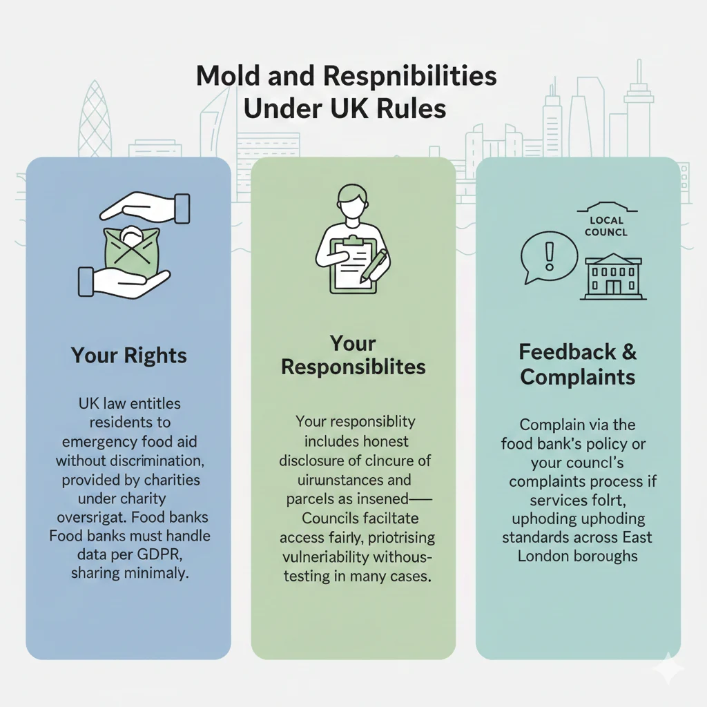 Complain via the food bank’s policy or your council’s complaints process if services fall short, upholding standards across East London boroughs.
