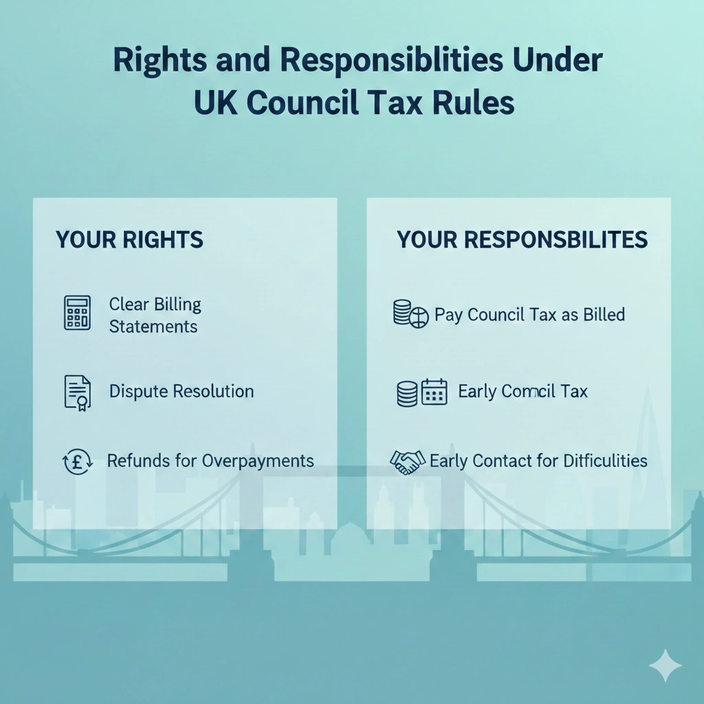 Under the Local Government Finance Act 1992, Tower Hamlets residents must pay council tax as billed, with instalments spread over 10 or 12 months. Taxpayers hold the right to clear billing statements, payment receipts, and dispute resolutions via formal council processes. Councils like Tower Hamlets must offer reasonable payment methods and notify of changes, upholding transparency.