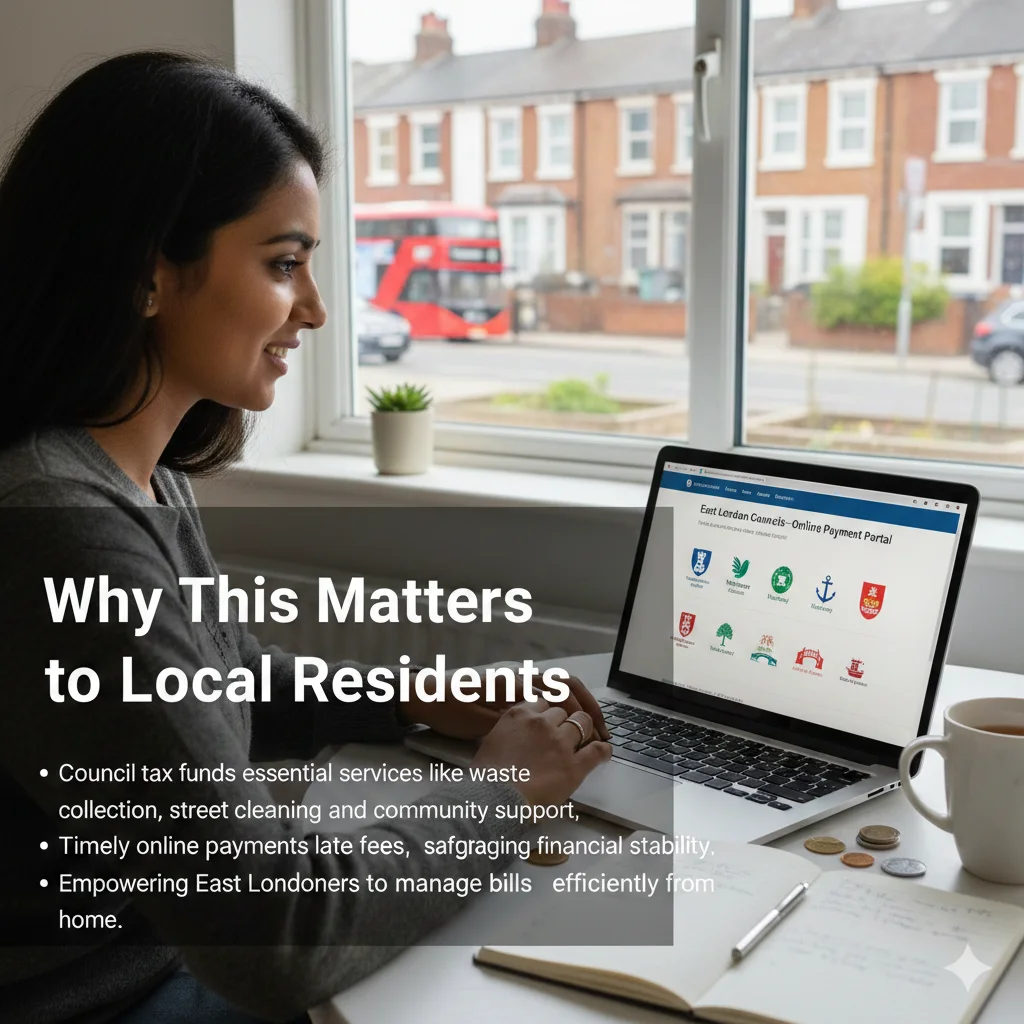 Council tax funds essential services like waste collection, street cleaning, and community support across East London councils, including Tower Hamlets, Newham, Hackney, Waltham Forest, Redbridge, and Barking & Dagenham. For residents facing tight budgets, timely online payments prevent accrual of late fees or enforcement actions, safeguarding financial stability. In Tower Hamlets, where many households rely on local services, managing payments digitally reduces stress and supports smoother access to housing and welfare provisions.