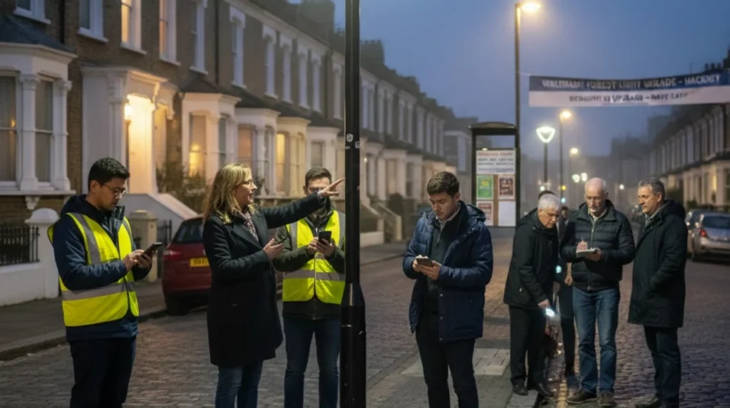 Inspect street lights near your home during evening walks to spot issues early, reporting them before full failure. Encourage neighbours to join community watch groups in Tower Hamlets or Hackney for collective vigilance on local lighting. Note column numbers during daylight for faster future reports.