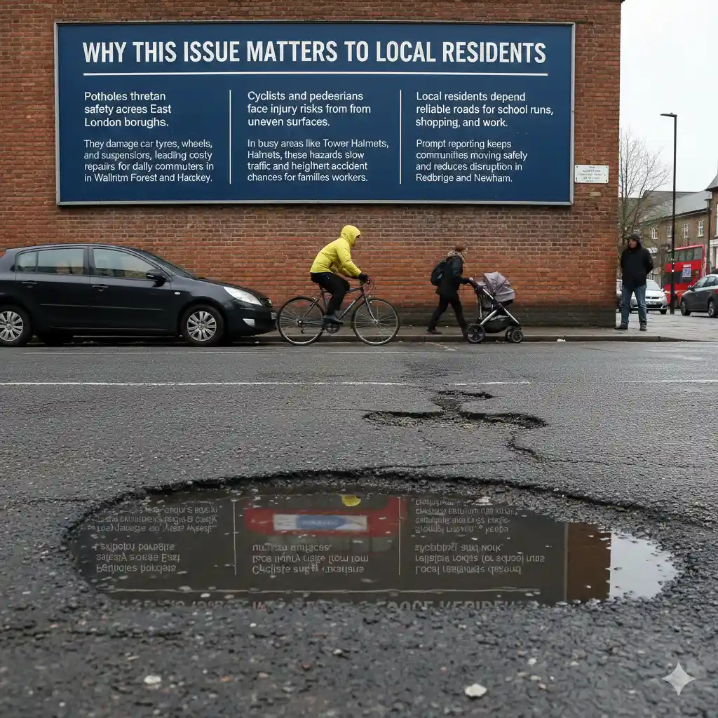 Local residents depend on reliable roads for school runs, shopping, and work. Prompt reporting keeps communities moving safely and reduces disruption in Redbridge and Newham.
