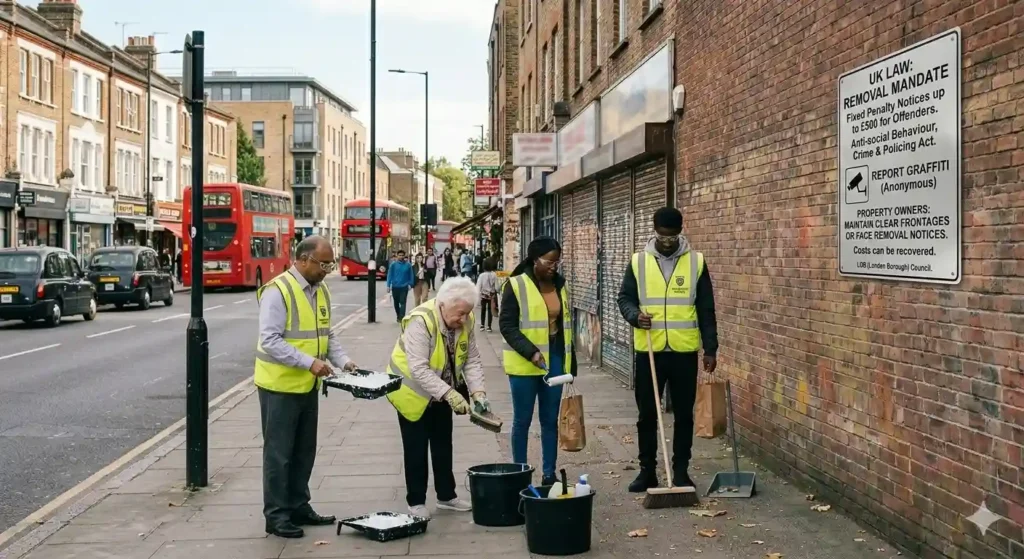 Offensive or racist graffiti on public property receives priority treatment, often removed within 24 hours by East London councils including Hackney and Newham council.